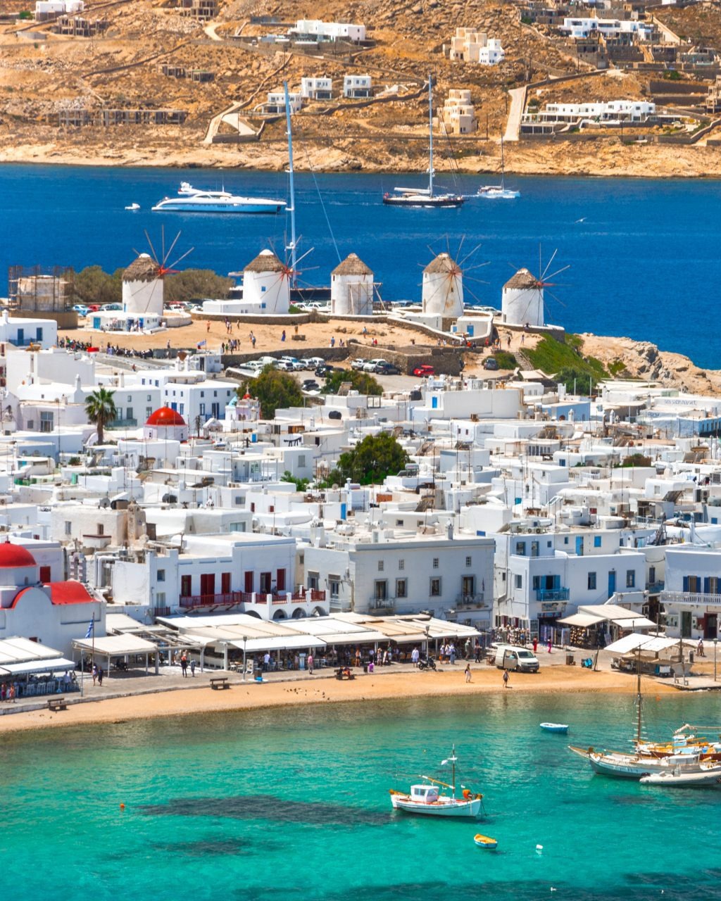Mykonos International Airport serves the island. Alternatively, visitors can travel to Athens or one of the neighboring islands (Paros, Naxos, Syros, etc.) and reach Mykonos by ferry..